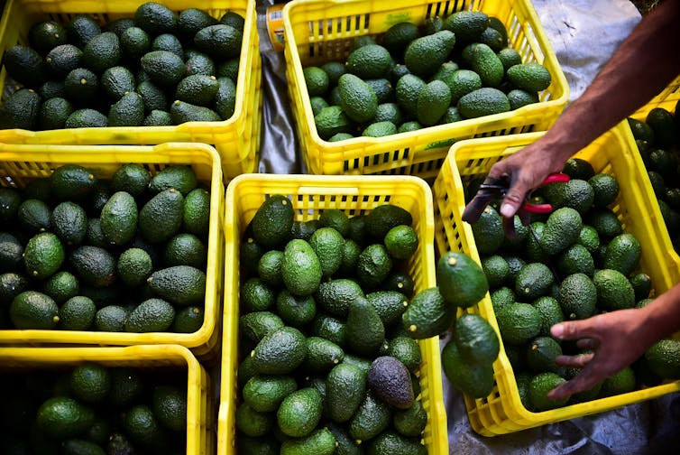 Cosecha de aguacates en Uruapan, en el estado mexicano de Michoacán. Ronaldo Schemidt/AFP via Getty Images ...